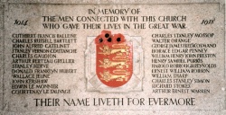 The Parish of St Helier has, as yet, no memorial to those born or living in the parish at the outbreak of the Great War who lost their lives during the conflict, although the design for a memorial to be constructed next to the Cenotaph has been approved. There is a memorial in the Town Church to 24 men connected with the church who were killed during the war.