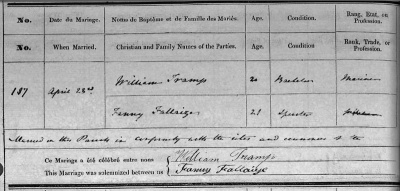 William Tramp and Fanny Fallaize were married in St Helier in 1843