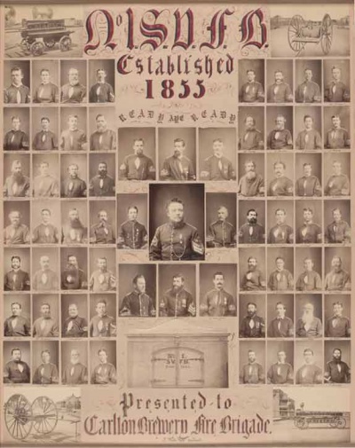 Some time after it was founded in 1855 he is known to have been a member of the Carlton Brewery Fire Brigade in Victoria, Australia, and his picture appears, along with 64 colleagues, on a magnificent brigade poster, which has survived.