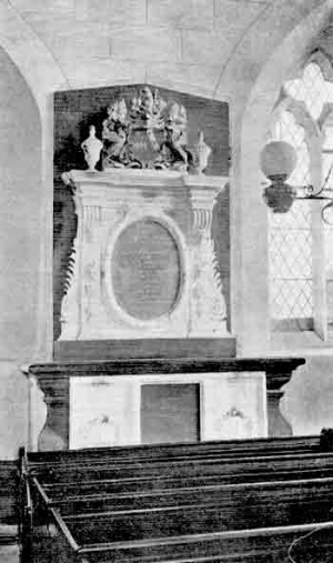 One of the finest mural tablets in the island will be found in the chancel. It was raised to the memory of Sir Edward de Carteret, Bailiff of Jersey, and Geutleman Usher of the Black Rod to His Most Sacred Majesty Charles II. He died in February 1682-3.