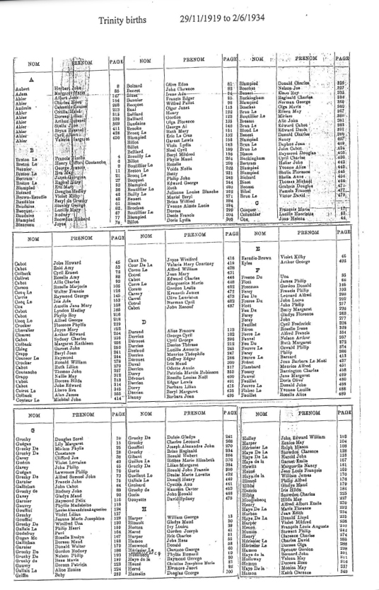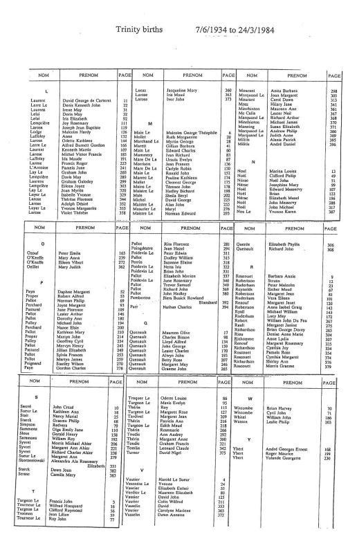 Trinity birth record indexes 1907-1984