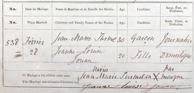 Jean Marie Turmel married Jeanne Louise Jouan in Trinity in 1880