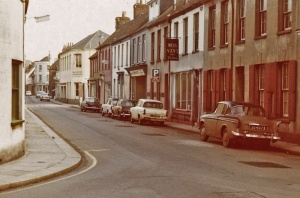 This picture was taken in 1974 by the noted campaigner for preservation of St Helier's architectural history, Andre Ferrari. He comments:'This entire row was demolished for the Hue Court development soon after. In subsequent years the entire rest of the street up to Bird's Bakery on the corner of New Street was demolished in piecemeal redevelopment. Only the house on the left remains. Shops that vanished included Seward (books I think), and Le Mart which was an Aladdin's cave of household goods. The next corner was Wellington Furnishers, and just a door or two up a builder's yard in the former St Jude's church. All now gone. And who knows what lanes and yards existed behind the street frontages? '