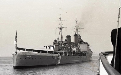 From 1936 - 1938 he was on the staff of the Royal Navy War College, Greenwich, before being given command from 1938 -1939 of the Town class light cruiser HMS Sheffield. Sheffield had been commissioned in 1937 and was the first ship in the Royal Navy to have radar.