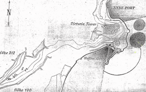 - "In the 1940s the Germans heavily armed Victoria Tower and equipped it with flame-throwers, machine-guns and an anti-aircraft gun on the roof."