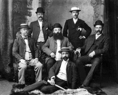 St Helier Centeniers pose for a portrait after the 1896 Visite Royale - F T Carter, E T Nicolle, E F Carrell, F M Cavey, A A Downer and J E Pinel