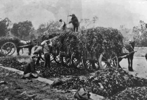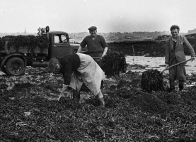 The main use of vraic is for spreading over potato fields during the winter. It is then ploughed into the soil before the potatoes are planted in late winter and spring. Vraic was traditionally gathered by horse and cart in Grouville Bay and St Ouen's Bay, and in smaller quantities at Le Hocq and Havre des Pas. The practice continues using tractors and trailers, although the quantity taken has diminished over the years.