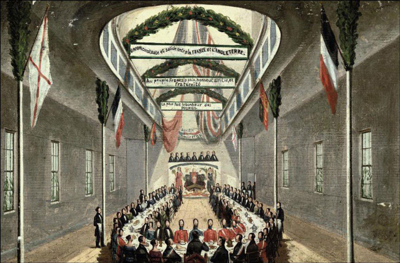 - "At about 4 pm they all met in the Royal Square, and an hour later, headed by their Band they proceeded to the Banquet Hall, the ancient Chapel in Don Street. Unfortunately a certain amount of confusion reigned. Lieut-Colonel Edward Sullivan, Commandant of the 5th Regiment Royal Militia of Jersey, presided and five toasts were honoured, but because of the prevailing noise neither the speeches of the Honourable M Bouvallier, representing the people of France and Mayor of Avranches, or that of M Boniface, Mayor of Granville, could be heard.