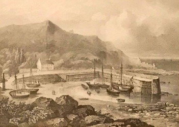 This is the first house built here, datestone 1832, a prominent building seen in isolation in 19th century views of theharbour from the south. North-east wing added later in 19th century, possibly at same time as dormers. Lean-to shed seen on south-west elevation in early 20th century postcard view, replaced later in 20th century by present wing, recently upgraded.